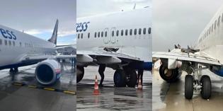 Antalya Havalimanı’nda Sun Express firmasına ait bir uçağın kalkış sırasında tekerlekleri yerinden çıktı ve uçak motorun üzerine oturdu.