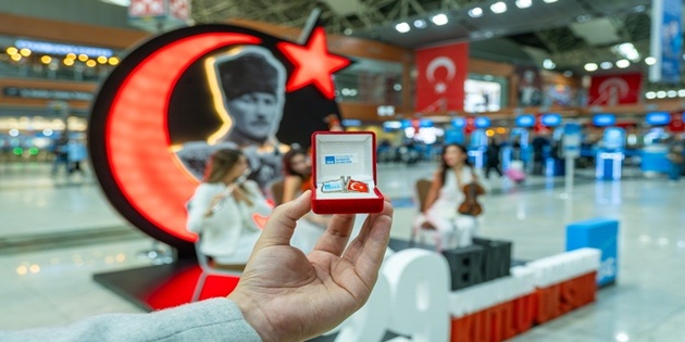 Giden katı iç hatlar kapısının önüne konumlandırılan “"Cumhuriyeti biz böyle kazandık" temalı fotoğraf alanının önünde gerçekleştirilen etkinlikte, yolcular trio’nun seslendirdiği eserlere eşlik ederek kutlamalara katıldı. Havalimanının giden yolcu katında Kurtuluş Savaşı'ndan temsiller, ay yıldız ve Atatürk görselinden oluşan fotoğraf çekim alanı, pek çok yolcunun uğrak noktası oldu.