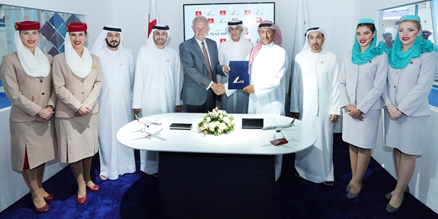 Bahreyn Airshow’un ilk gününde imzalanan anlaşma, geçtiğimiz yıl belirlenen iş birliği çerçevesinde her iki havayolu arasında büyüyen bir ilişkinin sinyalini verdi. Anlaşma Emirates Havayolu Başkanı Sir Tim Clark ve Gulf Air CEO’su Captain Waleed Al Alawi tarafından Gulf Air Yönetim Kurulu Başkanı Zayed R. Alzayani huzurunda imzalandı. İmza törenine her iki havayolunun üst düzey yönetim ekiplerinde yer alan isimler de katıldı.
