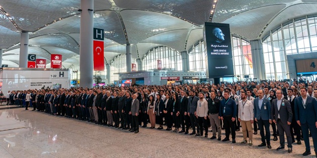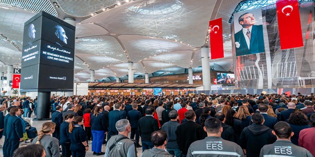 Türkiye Cumhuriyeti'nin kurucusu Mustafa Kemal Atatürk'ün ebediyete intikal edişinin 87'nci yıldönümünde İstanbul Havalimanı'nda töreni düzenlendi. Havalimanının Dış Hatlar Gidiş Terminali'ne Türk bayrağı ile Atatürk portresi asıldı. Tören öncesinde Türkçe ve İngilizce anonslar yapıldı.