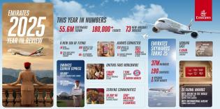 Dünyanın lider havayolu şirketi Emirates, 2025 yılını 55,6 milyon yolcu taşıyarak, 180.580 uçuşla Dünya’nın etrafında tam 29.290 tur atarak ve filosunu 73 yeni uçak siparişiyle güçlendirerek başarıyla tamamladı. Ekim ayında 40. kuruluş yıl dönümünü kutlayan Emirates, “İyisiyle Uçun” anlayışıyla uçuş