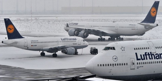 Almanya'nın en büyük havalimanı Frankfurt Havalimanı’nda kar yağışı ve don olayları nedeniyle uçuşlarda iptal ve gecikmeler oluyor. Almanya’da geçen hafta ortasından itibaren etkili olan şiddetli kar yağışı ve buzlanma, hava ulaşımında aksaklıklara yol açtı.