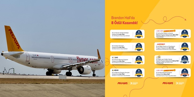Pegasus Hava Yolları, insan kaynakları uygulamalarıyla Brandon Hall Group HCM Excellence Awards’ta 6 Altın, 1 Gümüş ve 1 Bronz olmak üzere toplam 8 ödül kazanarak uluslararası arenada güçlü bir başarıya daha imza attı.